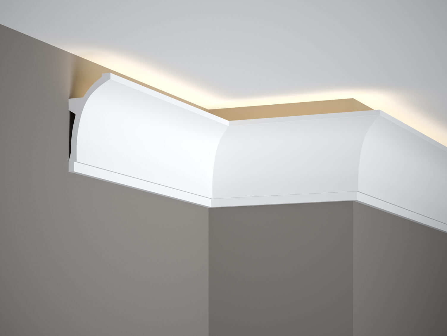 Listwa oświetleniowa MDB100 to gładki, lekko wygięty w stronę sufitu profil. Listwa zapewni doskonały efekt oświetlenia pomieszczenia wraz z użyciem paska LED. Wykonana z lekkiego tworzywa ProFoam o właściwościach wodoodpornych.