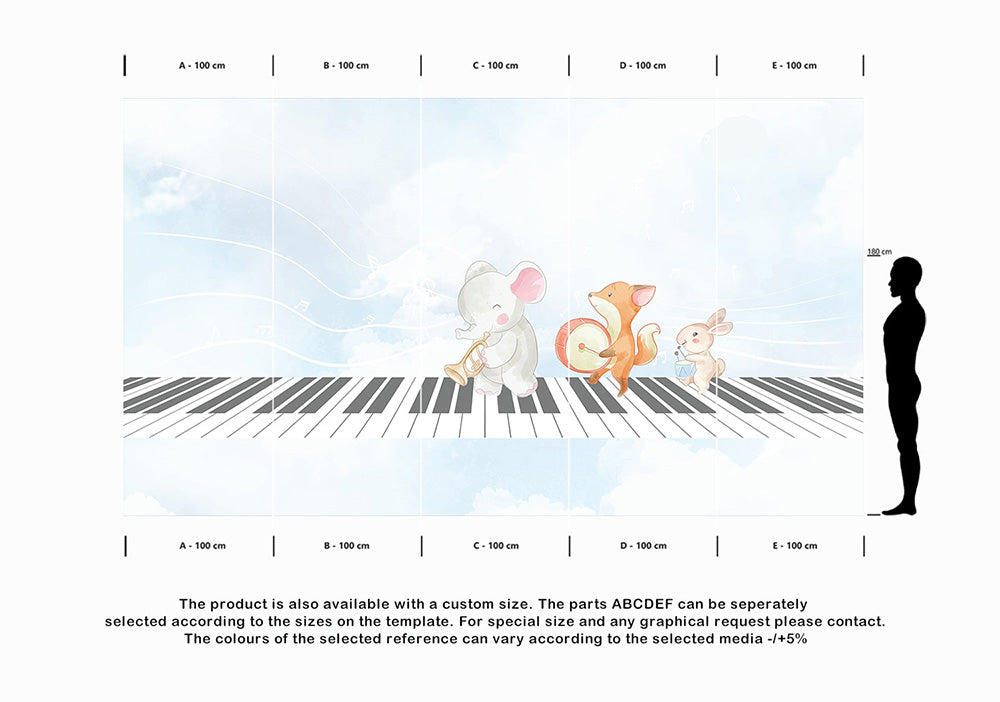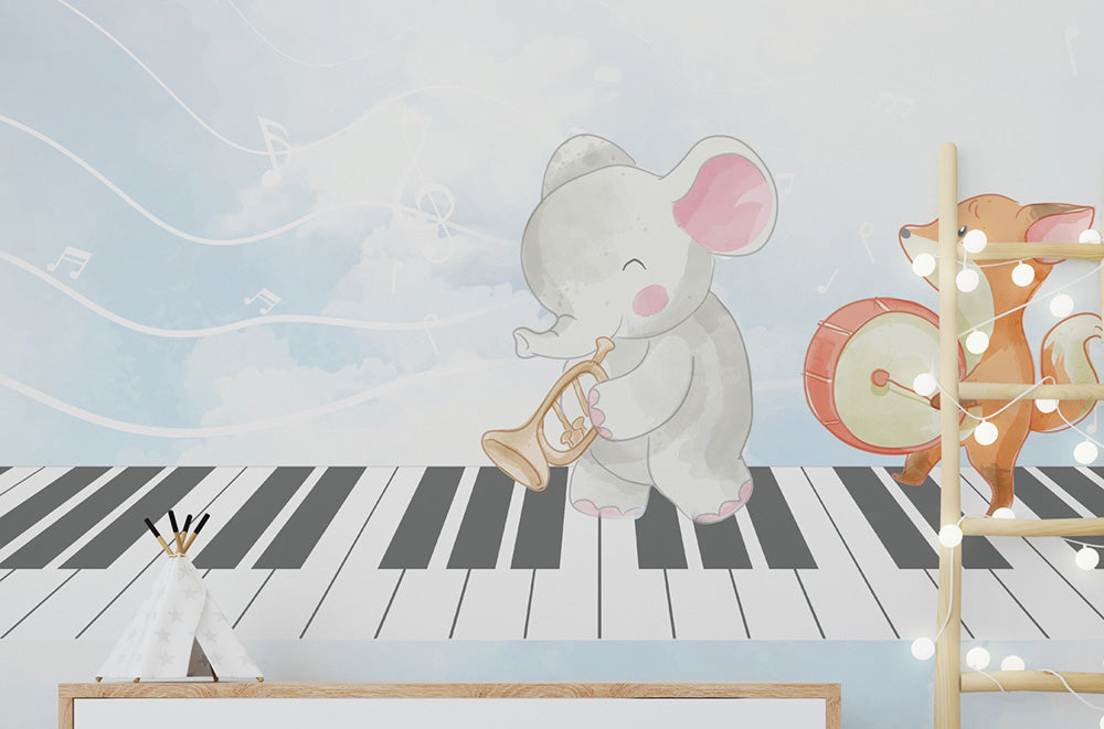 Wall'n Love Little One - Zwierzęta na niebieskim tle fortepianu